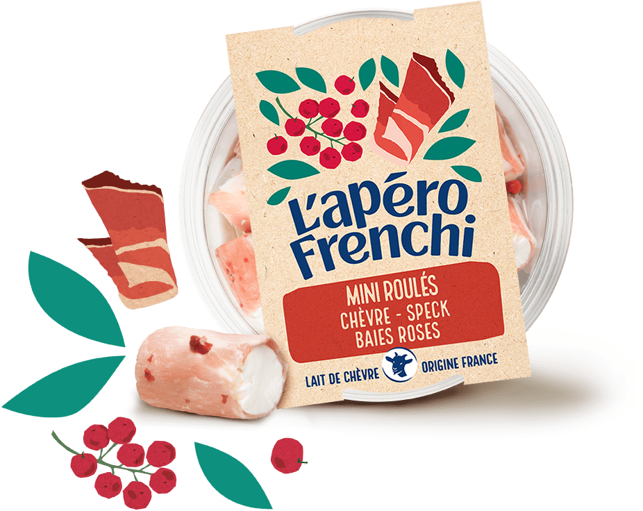 LISTE D’INGRÉDIENTS: Fromage de chèvre au lait pasteurisé (Origine : France) 54,3%, huile de colza 22,9%, speck 21,8% (viande de porc (Origine : UE), sel, épices et plantes aromatiques, antioxydant : ascorbate de sodium, conservateur : nitrite de sodium), baies roses, sel. Traces éventuelles de gluten, fruits à coque, poisson.